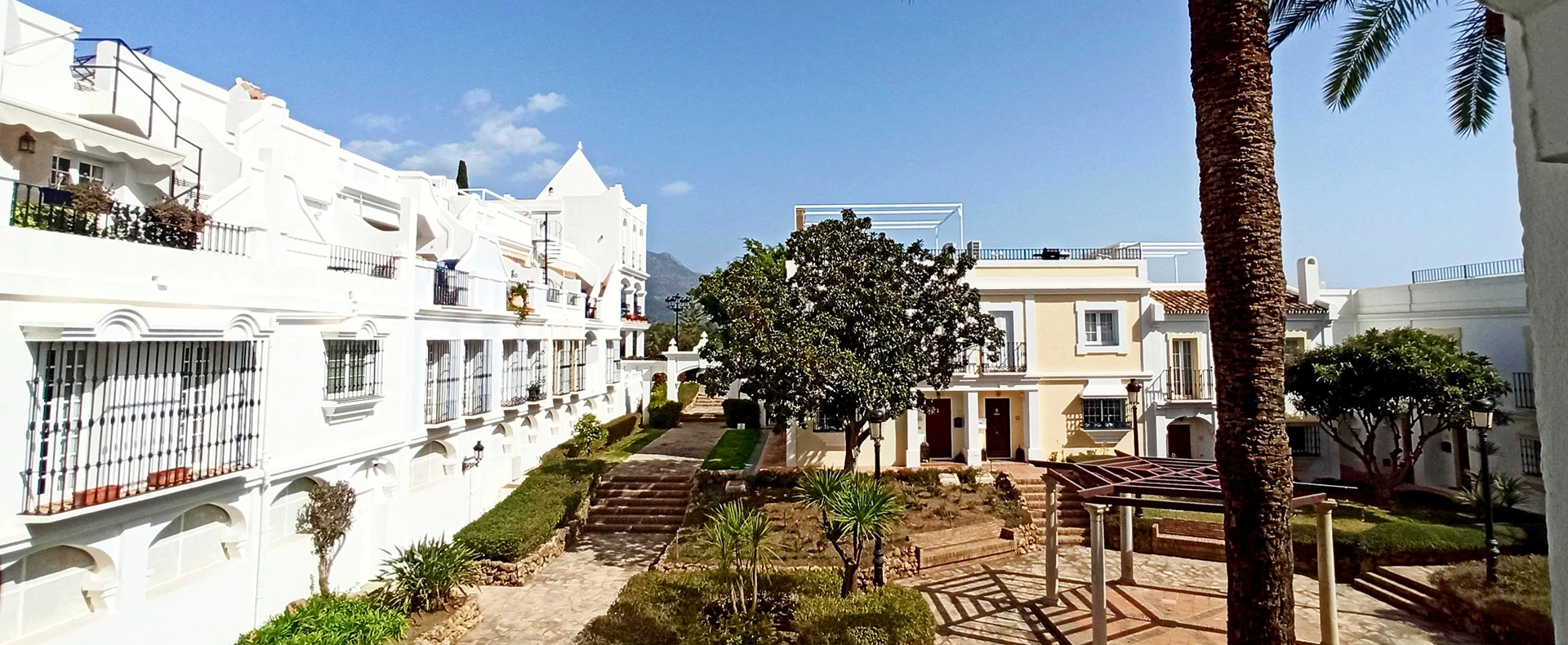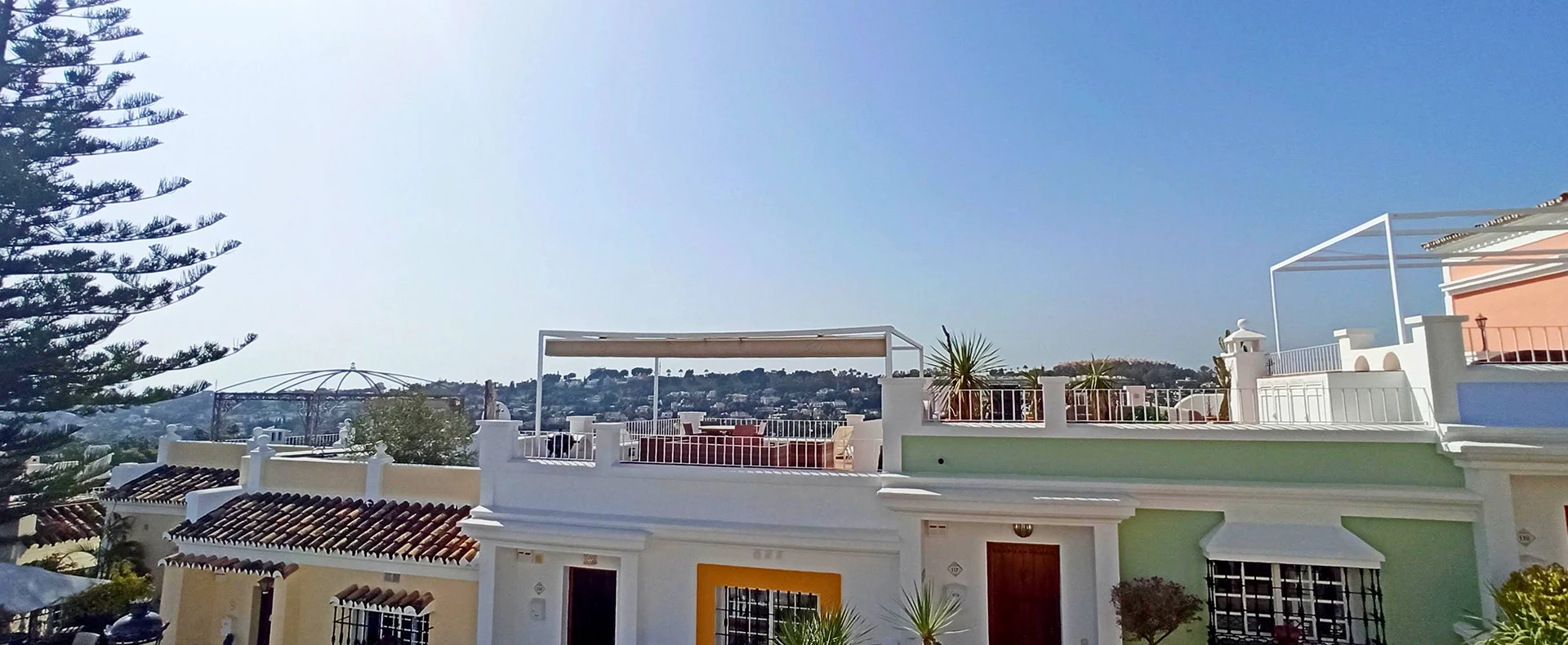Aloha Pueblo ist eine charmante Wohnanlage, die 1985 erbaut wurde. Sie hat die Form eines typisch andalusischen Dorfes, das sich auf mehreren Ebenen um einen schönen zentralen Platz entwickelt. Sie ist malerisch, farbenfroh, schön und sehr gepflegt. Sie befindet sich mitten im Herzen des Golftals von Marbella, zwischen vier sehr bekannten, erstklassigen Golfplätzen und ganz in der Nähe des berühmten Puerto Banús. Auf den Golfplätzen Aloha Golf, Royal Las Brisas, Los Naranjos Golf und La Quinta Golf finden jährlich mehrere europäische Meisterschaften statt. Aloha Pueblo verfügt über 188 Wohnhäuser, jedes mit seiner eigenen Persönlichkeit, keines gleicht dem anderen, mit einer handwerklichen Architektur. Es verfügt auch über mehrere Geschäftsräume, in denen sich Restaurants, Cafés, internationale Anwaltskanzleien, Bauunternehmen, Immobilienmakler, Friseursalons und vieles mehr befinden.