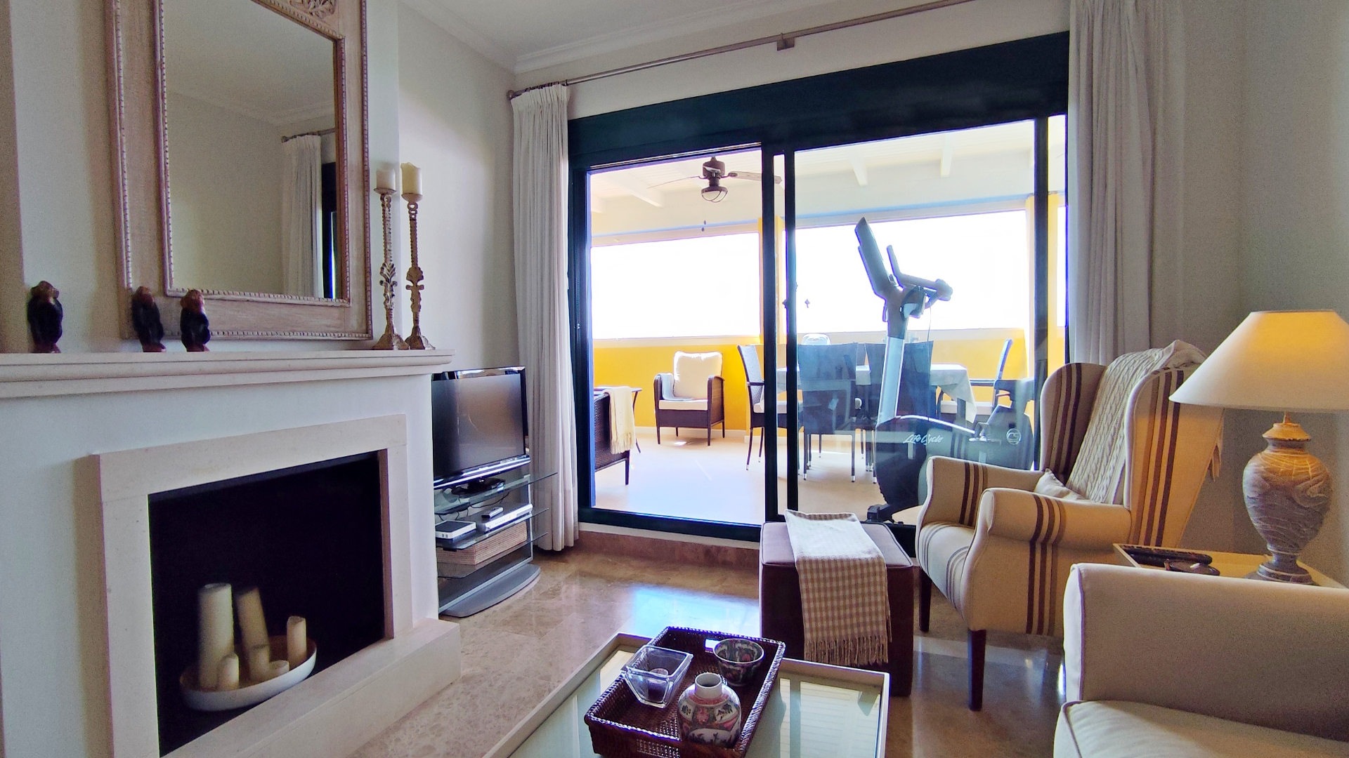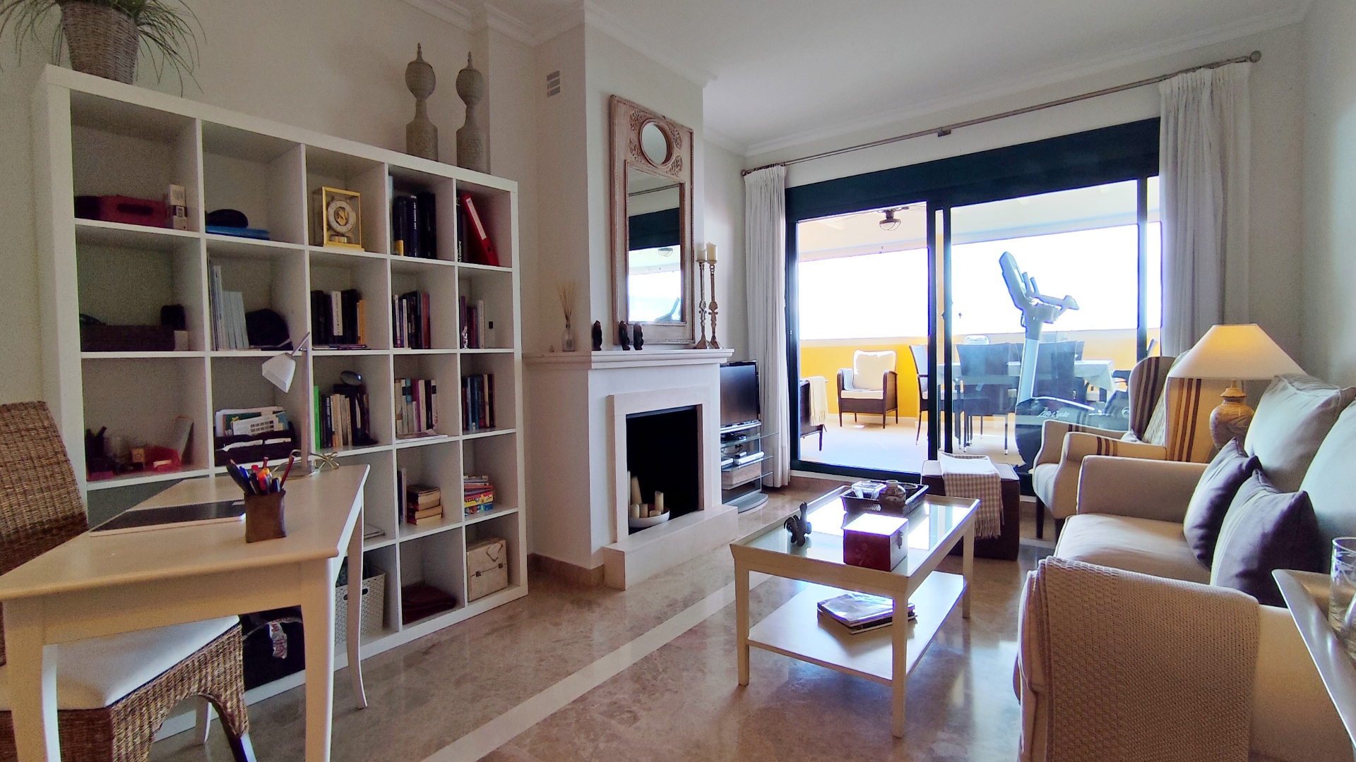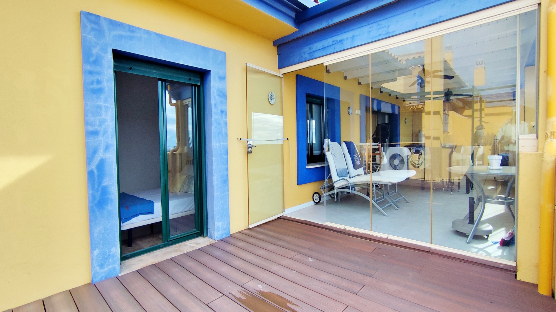 Con 105 m² interiores y 65 m² de terraza, el ático se distribuye en dos dormitorios y dos baños, destacando un luminoso salón con chimenea y salida directa a la terraza. Tanto los dormitorios como la cocina cuentan también con acceso a la terraza, creando una fluidez interior-exterior ideal para disfrutar del clima soleado de la Costa del Sol. Una parte de la terraza está techada y cerrada con cortinas de cristal Lumon, perfecta para usar como salón exterior durante todo el año. Además, dispone de persiana eléctrica en el salón para mayor confort.