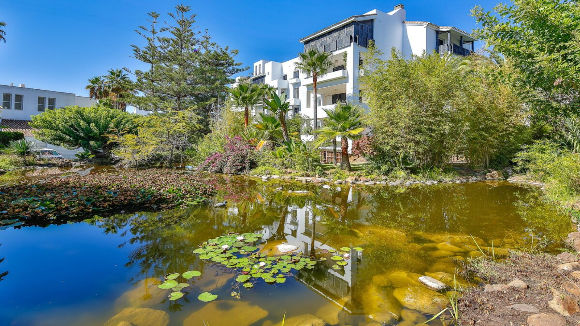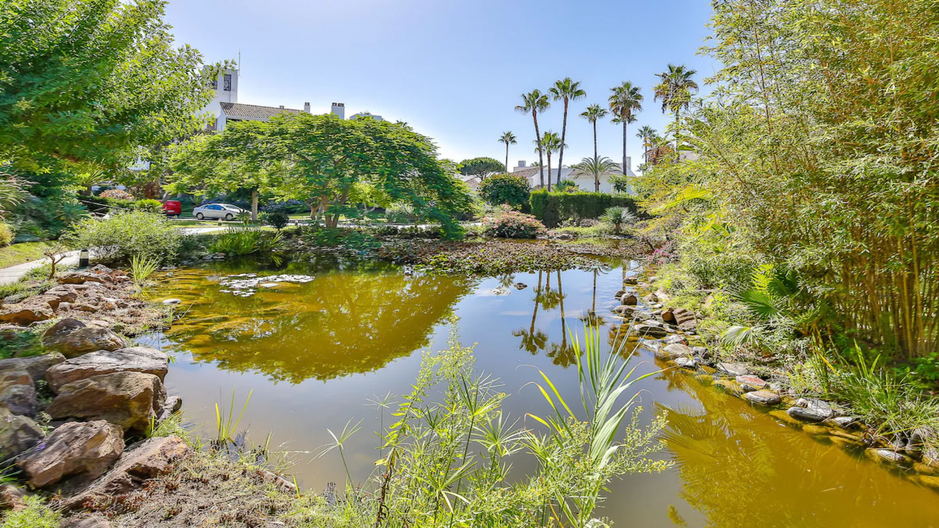 En la codiciada zona de Elviria, una de las áreas más queridas de Marbella Este, se encuentra este elegante apartamento dentro de la encantadora comunidad de Jardines de Las Golondrinas, un complejo de inspiración andaluza que combina el carácter tradicional con el confort moderno. Rodeado de jardines maduros, fuentes y zonas verdes, este residencial ofrece un ambiente de serenidad a pocos pasos del mar, con una gran piscina comunitaria con bar y amplias áreas para descansar bajo el sol de la Costa del Sol.